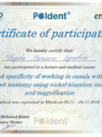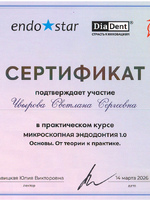 | Врач-стоматолог-терапевт ООО "Диал-Дент" | 2018 г. |