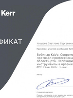 | Вебинар KaVo. Cовременный взгляд на протокол профессиональной гигиены полости рта | 2020 г. |