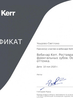 | Вебинар Kerr. Реставрация фронтальных зубов. Основы формы и оттенка | 2020 г. |
