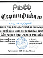 Сергей Сергеевич окончил Белорусский государственный медицинский университет в 2008 году по специальности «Стоматология». За годы практики прошёл более 10 курсов повышения квалификации по ортопедической стоматологии и дентальной имплантологии.